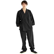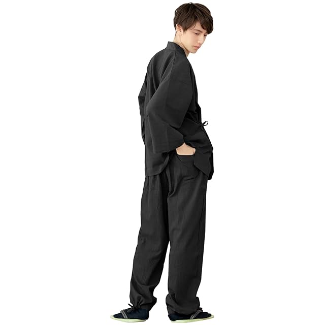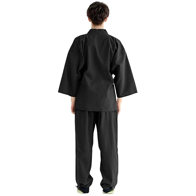 [キョウエツ] 作務衣 男性用 夏 さむえ メンズ 綿 楊柳 14 (M, 黒)