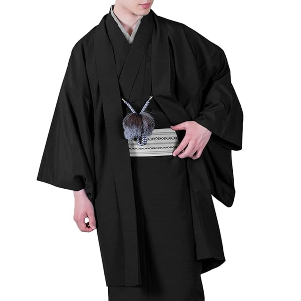 男性に合うシンプルで落ち着いた色の羽織で、羽織紐や小物の合わせ方によって色々な和装スタイルを楽しめます。