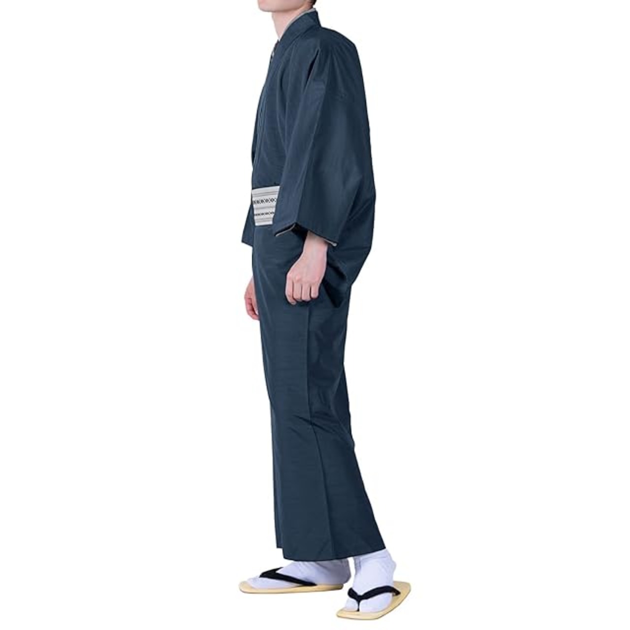 商品名:[キョウエツ] 着物 洗える 単衣 無地 紬生地 メンズ (L, 青)