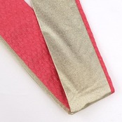 ふくれ織で疋田柄を織り出し、銀通しの生地が光の加減によってキラキラと輝きます。2枚重ねたように見える重ね衿です。