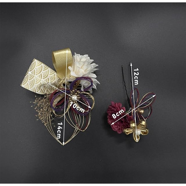着用方法: 着物や袴姿に合わせやすく、ヘアスタイルに簡単に取り付け可能なヘッドドレスタイプ。 各パーツがUピンまたはIピン仕様になっておりますご使用時に量を加減でき、色んなアレンジをお楽しみいただけます、折り曲げてしっかりと固定することが出来ます。 ピン部分を自由に曲げられるため、ご自身でのアレンジやお子様などにも簡単にご使用いただけます。