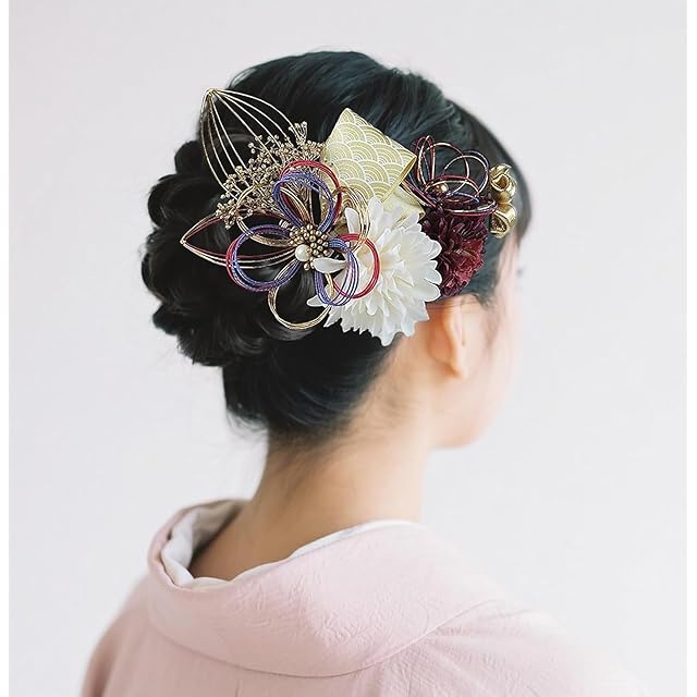 伝統と現代的なエレガンスが融合した髪飾りは、成人式、卒業式、結婚式、七五三など、特別な日本の伝統行事を彩る完璧なアクセサリーです。丁寧に作られたダリアの造花が主役となり、伝統的な水引きとの調和が美しい、手作りのヘッドドレスです。着物や袴、振袖などの和装に最適で、どんな着物の色合いにも調和します。繊細な細工と上品なデザインで、華やかな場面での装いを一層引き立てます。職人の技が光る細部まで丁寧な仕上がりで、思い出に残る特別な日をより一層素晴らしいものにします。和装スタイルに欠かせない上品な存在感を放ち、着る人の魅力を引き立てる逸品です。