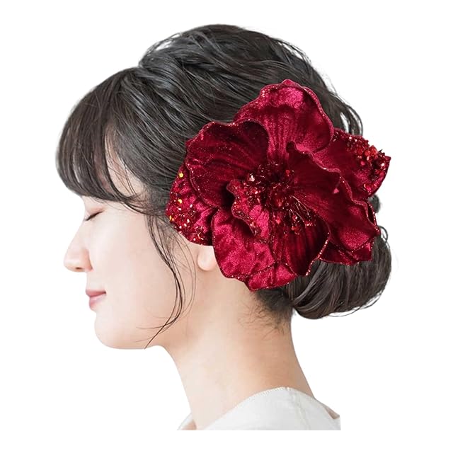 [Lupine] マグノリア 1本 レッド 赤 豪華 髪飾り和装 結婚式 豪華 髪飾り和装 結婚式 ウエディング 成人式 卒業式 袴 はかま 造花 花 アーティフィシャルフラワー ha109