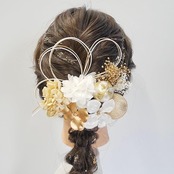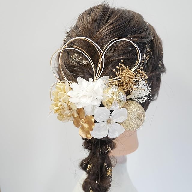 [Lomeri] ロメリ 水引アレンジの髪飾り ドライフラワー 成人式 卒業式 結婚式 袴 K20 (白×ゴールド)