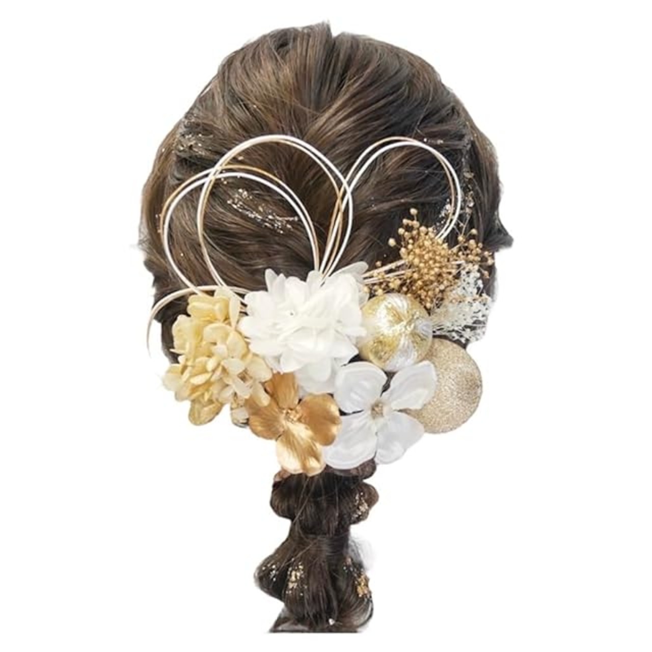 商品名:[Lomeri] ロメリ 水引アレンジの髪飾り ドライフラワー 成人式 卒業式 結婚式 袴 K20 (白×ゴールド)