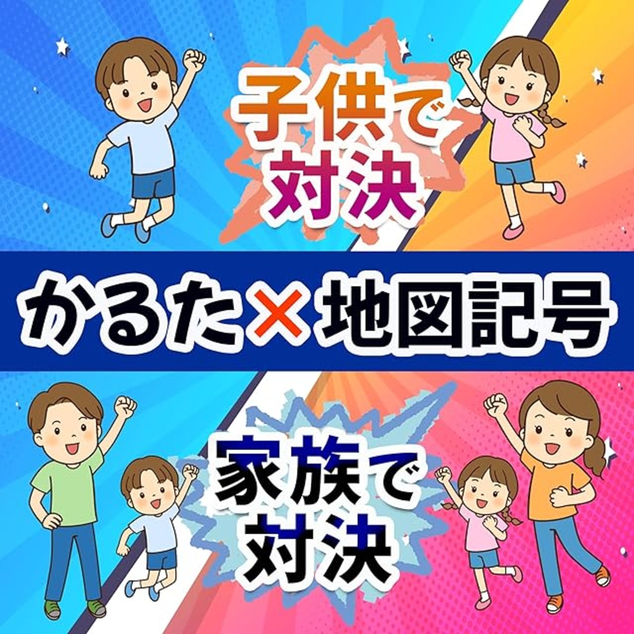 【地図記号を楽しくマスター】地図を見るときや地理のテスト対策に役立つ「地図記号」を、遊びながら自然に覚えられるかるたです。発電所・寺院・警察署など、テストでよく出題される50種類の地図記号を収録。遊ぶたびに知識が定着し、学習をサポートします。