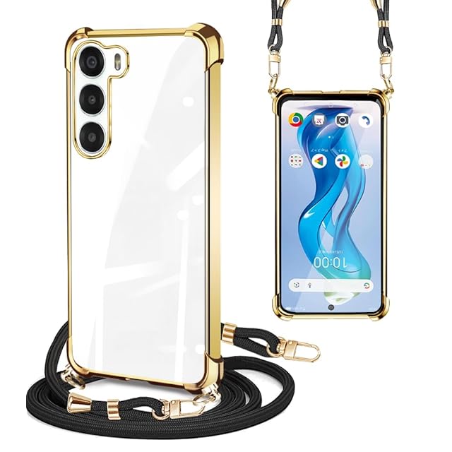 商品名:PAILAIMEN ZTE Nubia S 5G ケース クリア ショルダーストラップ A403ZT スマホケース 耐衝撃 肩掛け 縄掛け Nubia S 5G ケース 韓国 透明 TPU ストラップ付き 携帯ケース 薄型 軽量 紐付き 斜めがけ 織り ネックス 取り外し可能 ワイヤレス 落下防止 紛失防止 シリコン メッキ加工 バンパー(ゴールド)