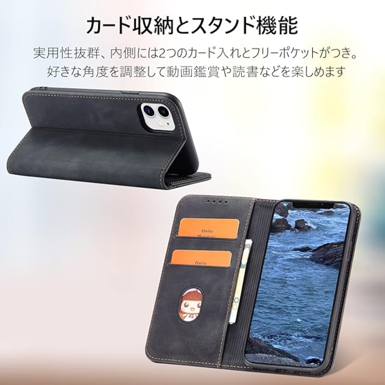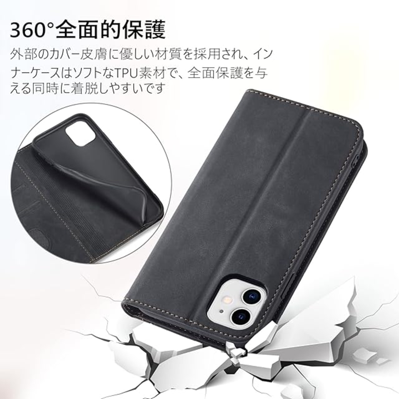 商品名:【iphone11手帳型ケース】スマホケース おしゃれ シンプル 肌触り良い 肌感レザーアイフォン 11 内蔵マグネット 耐衝撃 全面保護 あいほん11携帯ケース 防塵 【6.1インチ対応】ブラック
