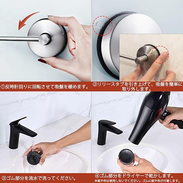【取り付け簡単】ねじなし、穴なし、滑らかな壁面に吸盤を吸着します。取り付ける前説明書を読んでからインストール始めます。もし不明なところがあったら遠慮なくメールします。インストールに問題がある場合は、直接お問い合わせください。24時間以内に問題の解決をお手伝いします。