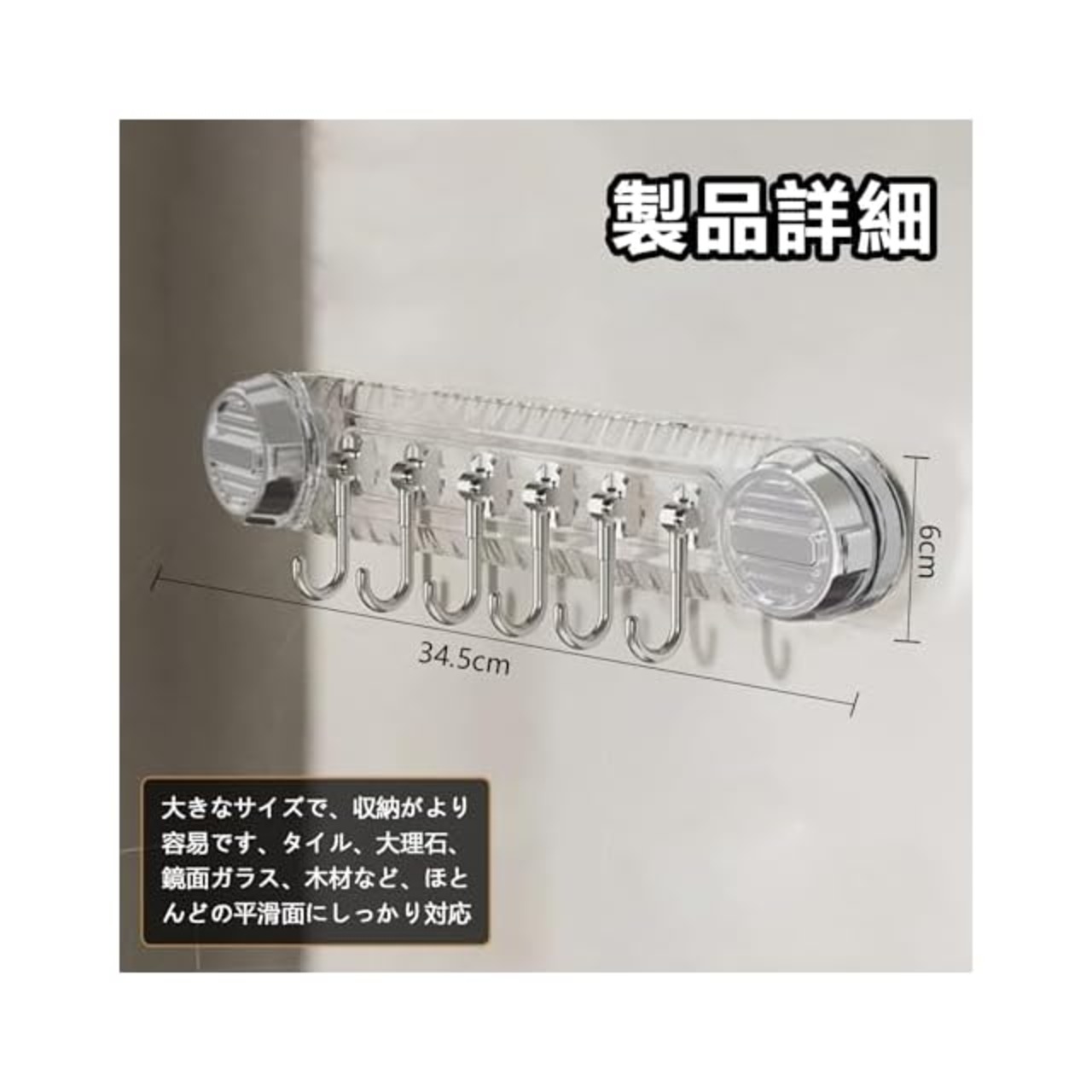 商品名:yowodana キッチンツールフック 壁掛け んくう強力粘着吸盤 6個調整可能フック 180度回転 新規品 ABS製 軽量 壁に穴を開けない し 防水防錆 便利用品 防音壁用 シャワーラック タオルハンガー 多機能収納 可動式バスルーム キッチン リビング ベランダなどに適用 (透き通った, 35cm)