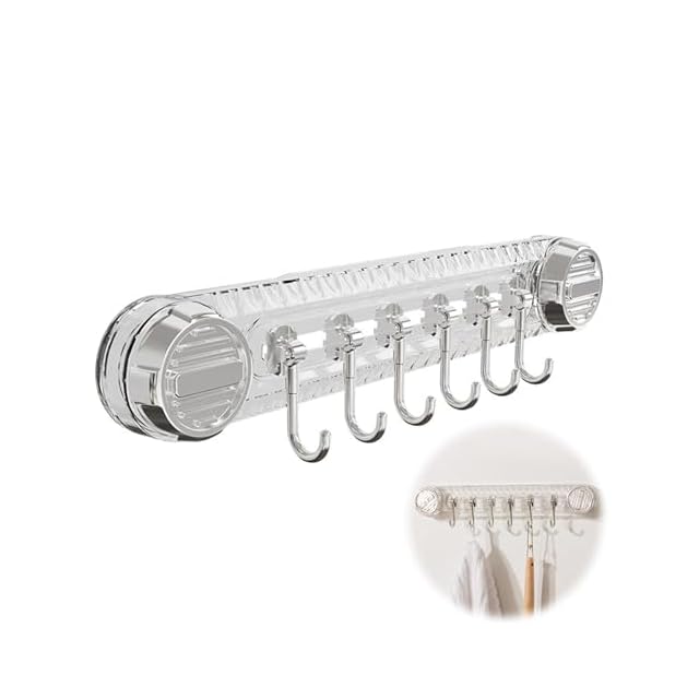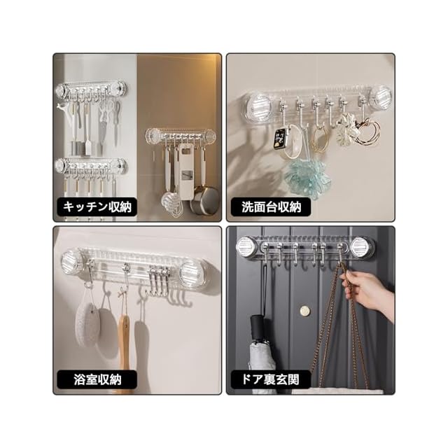 yowodana キッチンツールフック 壁掛け んくう強力粘着吸盤 6個調整可能フック 180度回転 新規品 ABS製 軽量 壁に穴を開けない し 防水防錆 便利用品 防音壁用 シャワーラック タオルハンガー 多機能収納 可動式バスルーム キッチン リビング ベランダなどに適用 (透き通った, 35cm)