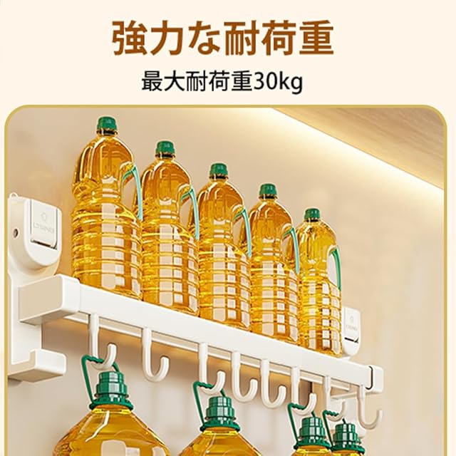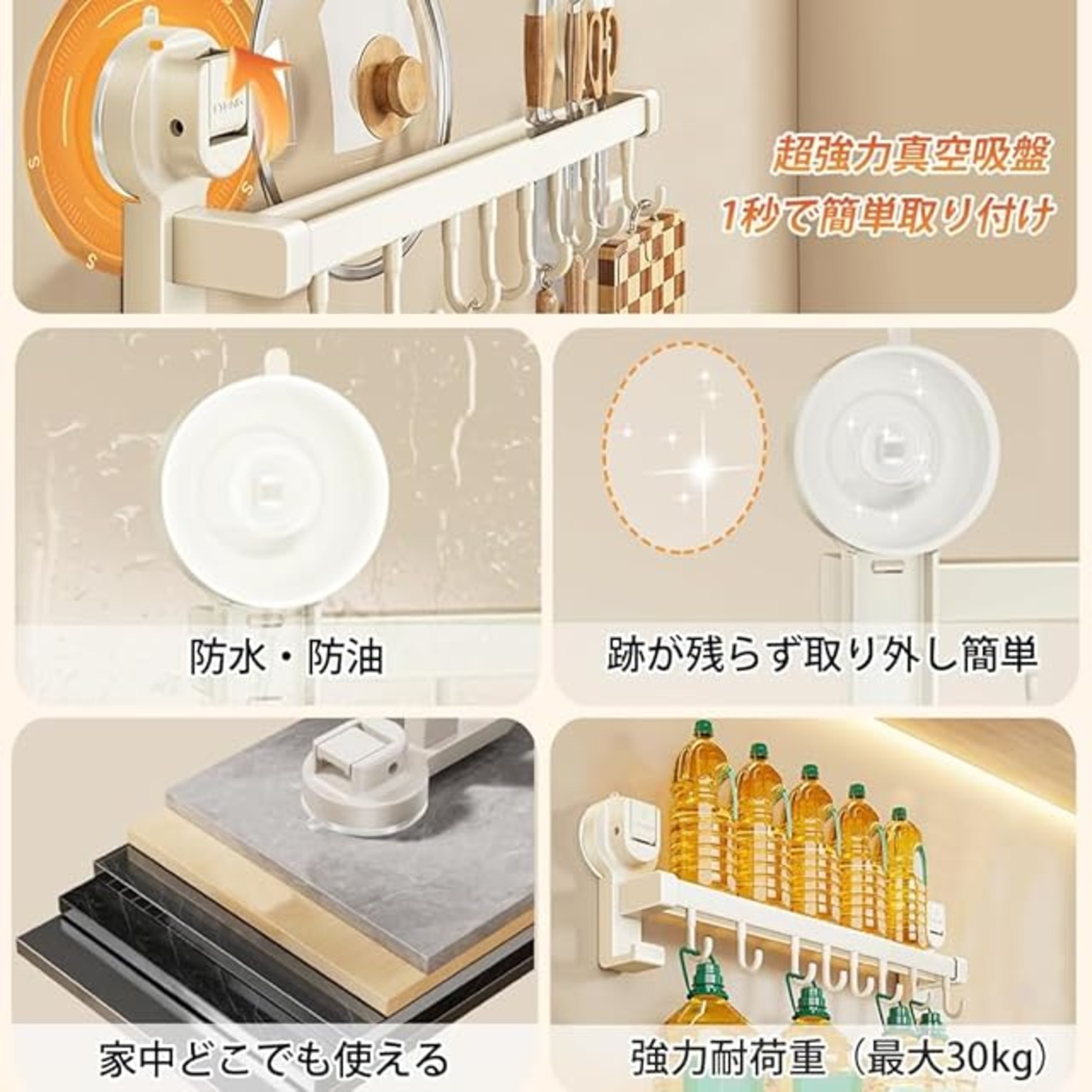 商品名:キッチンツールフック 吸盤式 炭素鋼+ABS キッチンラック 強力粘着 軽量 防水防錆 調理器具 キッチン用品ラック 鍋蓋置き 穴あけ不要 壁掛け 可動式フック 台所収納 強い収納力 可動式 簡単取付(ホワイト30cm)
