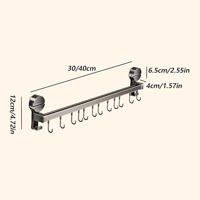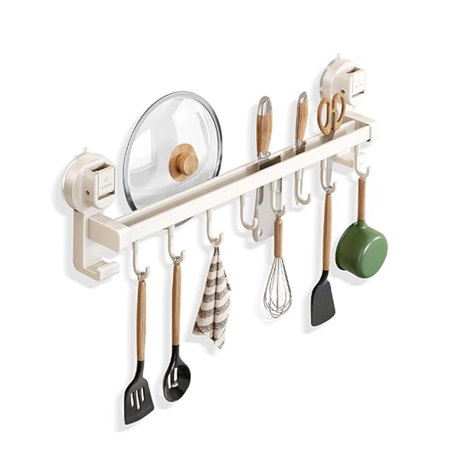 キッチンツールフック 吸盤式 炭素鋼+ABS キッチンラック 強力粘着 軽量 防水防錆 調理器具 キッチン用品ラック 鍋蓋置き 穴あけ不要 壁掛け 可動式フック 台所収納 強い収納力 可動式 簡単取付(ホワイト30cm)