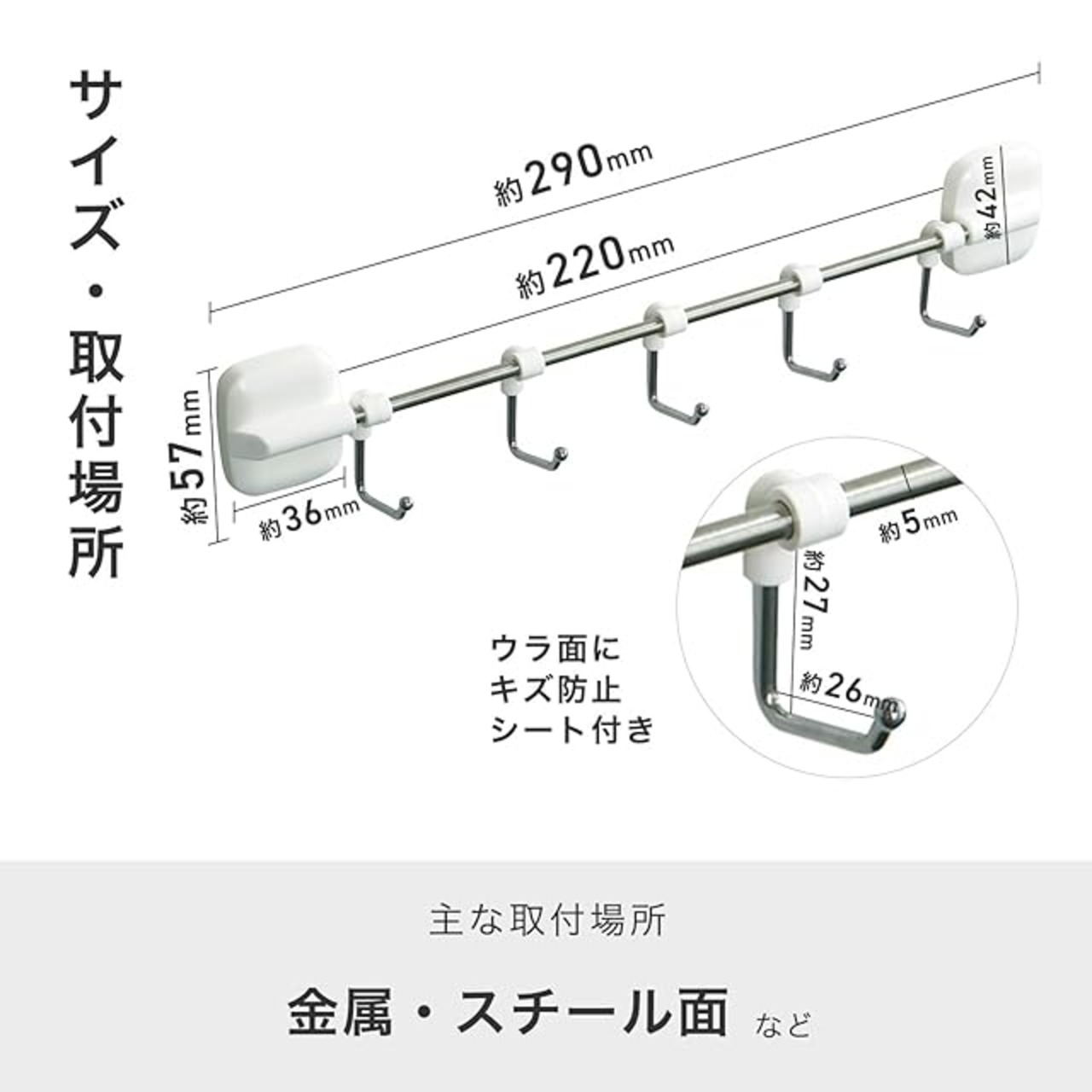 商品名:レック マグネット 5連フック (キズ防止シート付き) H-464