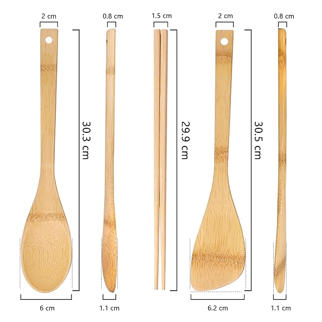❹【耐熱性に優れた】:竹は耐熱性が高く、フライパンや鍋を傷つけず、炒め物・揚げ物・グリル料理にも安心して使えます。