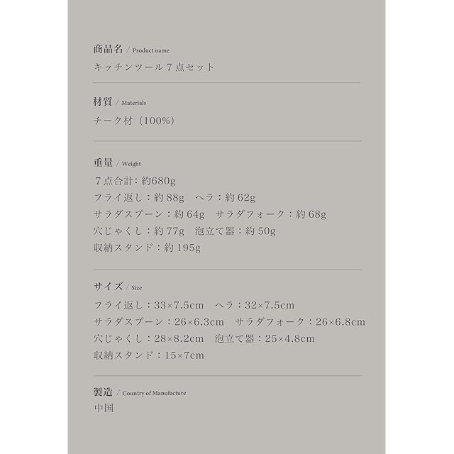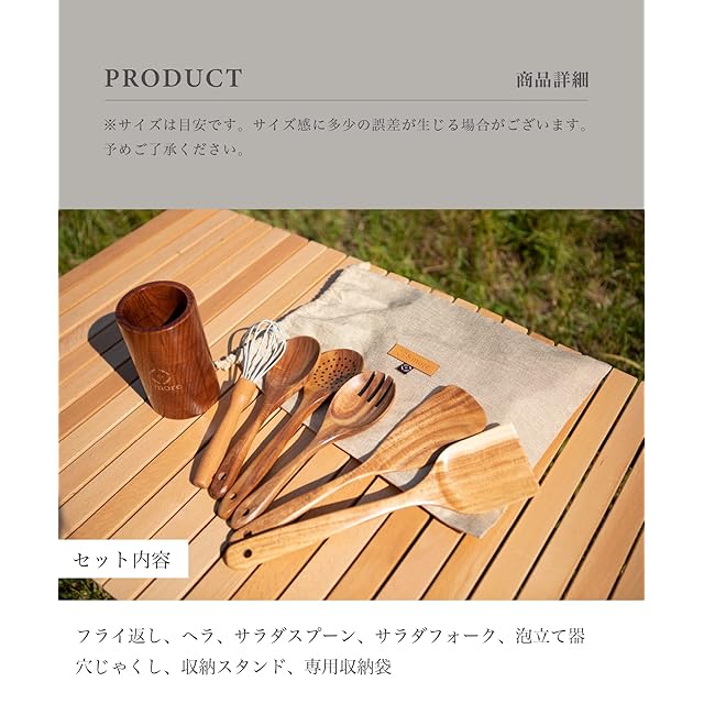商品名:S'more (スモア) Kitchen tools 7set キッチンツール セット 調理器具 木製 天然チーク材 クッキングツール 7点セット ベージュ FREE