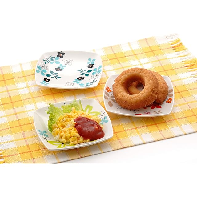 東秀陶器 (Tousyuutouki) お皿 中皿 プレート おしゃれ 可愛い セット 3枚 北欧 約奥14.0×幅14.0×高2.0㎝ 北欧スタイル スクエアプレート(3柄組)