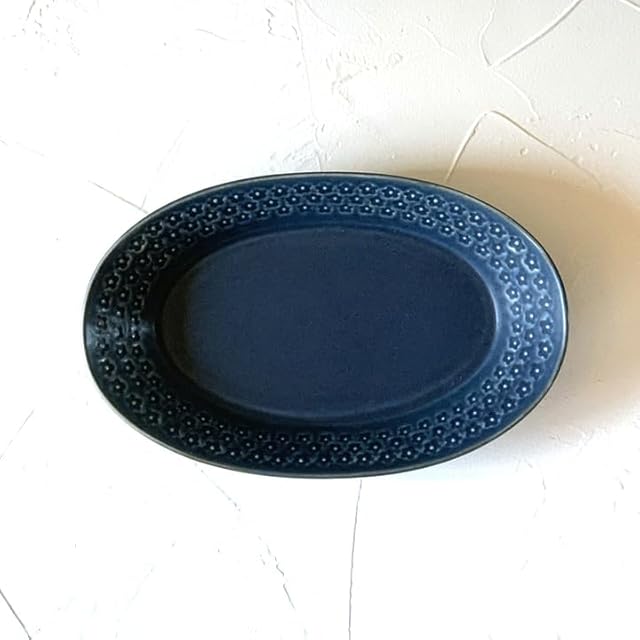 《印花シリーズ》<BR><BR> 手仕事のぬくもりを感じる、<BR> 花柄のスタンプ模様が印象的なシリーズです。<BR><BR> 落ち着いた色合いの釉薬を使用しており、<BR> 可愛らしさの中に大人の雰囲気も感じられる一枚に仕上がりました。<BR><BR> シンプルながら、食卓に優しい温かさを添えてくれます。<BR><BR> ---------------------------------------------------<BR><BR> 使い勝手の良いサイズ感で<BR> カレーやパスタはもちろん、サラダや煮物まで、<BR> いろいろなお料理に活躍する一枚です。<BR><BR> ---------------------------------------------------<BR> カラー マットネイビー<BR><BR> サイズ:約 縦16.5cm×横26.2cm×高さ4.6cm 約483g<BR><BR> 素材 陶器 日本製(岐阜) <BR><BR> ご使用後は、なるべく早めに汚れを落とし、<BR> よく乾燥させてから収納してください。<BR><BR> 陶器製品は、釉薬の色味や質感に個体差があり、<BR> 小さな黒点やムラが見られる場合がございます。<BR><BR> 陶器ならではの風合いとしてご理解のうえ、<BR> ご購入をご検討ください。<BR><BR> 完璧を求める方はご購入をお控えいただけますと幸いです。<BR><BR> ---------------------------------------------------<BR> 【注意事項】<BR><BR> ●陶器作品は、釉薬色の違い、少しの黒点など陶器の性質のため現れます。<BR><BR> ●手作り製品・型製品にかかわらず、重量、サイズに個体差がございます。<BR><BR> ●釉薬(色)職人が手で色塗りをしているため、色味、質感に多少の違いがございます。<BR><BR> ●製品には、製造工程で生じた極小の黒点や小さなキズが見られる場合があります。<BR><BR> ●強い衝撃や急激な温度変化などを与えると、ひび割れや欠けが発生する事がありますのでご注意ください。<BR><BR> ●万が一、ひび割れや欠けが発生した場合は、安全のため使用しないでください。<BR><BR> ●手洗い、食器洗浄機にかかわらず、洗剤は中性洗剤をおすすめいたします。<BR><BR> ●ご使用後はお早めに汚れを落とし、十分乾燥させてからご収納ください。<BR> <BR> ●乾燥が不十分ですと、カビ・シミ・臭気の原因となる場合がございます。<BR><BR> * 完璧をお求めの方はご購入をお控えください。 <BR><BR> ●形や色、サイズ等、商品の仕様は都合により予告なく変更することがございます。<BR><BR> 上記の点につきまして、ご理解いただきたくお願い申し上げます。<BR> <BR>