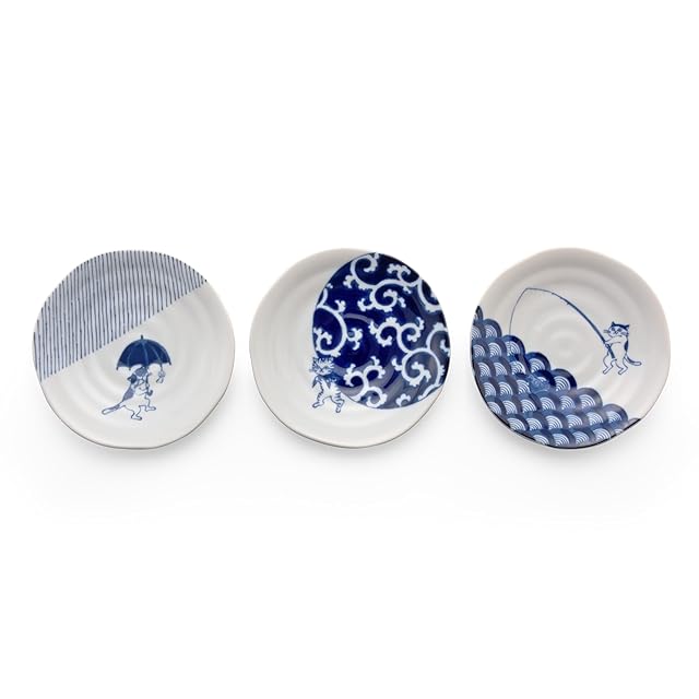 商品名:ヤマ吾陶器 お皿 プレート セット 猫 和風 美濃焼 ソメネコ 中皿 (3柄組)