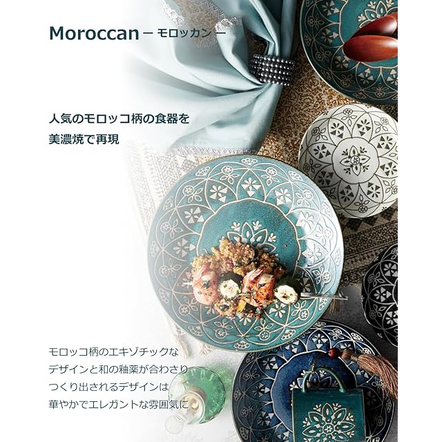 モロッコ柄のエキゾチックなデザインと和の釉薬が合わさりつくり出されるデザインは華やかでエレガントな雰囲気に。 人気のモロッコ柄を美濃焼で再現しました。
