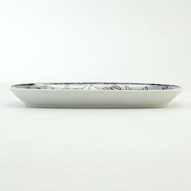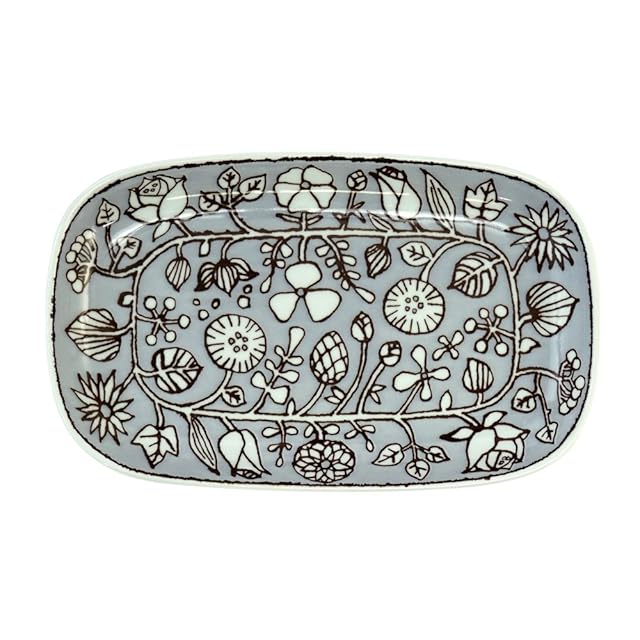 商品名:波佐見焼 長角皿 和山窯 フラワーパレード 長皿 長方形 皿 焼き魚 チャーハン皿 はさみ焼き はさみやき グレー 北欧 食器 おしゃれ 和食器 日本製 383748