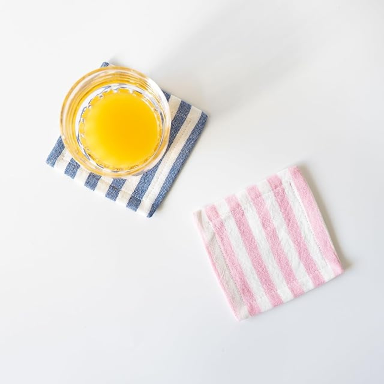 [VETLER] ベトラー インド綿100% コースター 3枚セット 10×10cm 布 おしゃれ 可愛い キッチン インテリア カフェ (ロンドンストライプ ブルー)