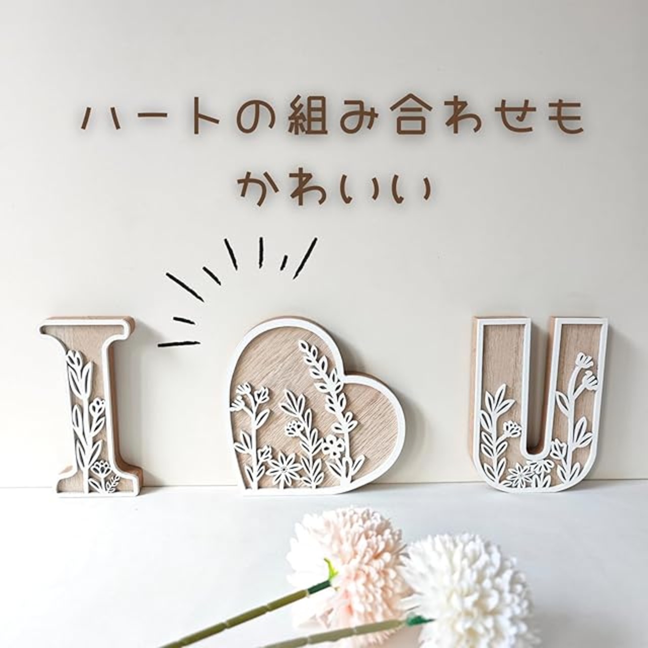 アルファベットの木製のオブジェです。 デザイン性が無く単調なものが多いなか、花柄でとても可愛いアルファベットのオブジェをご用意しました! 結婚式のウェルカムスペースやウェルカムボードでとても人気のある、アルファベットのイニシャルオブジェです。 「&」の文字があるため、新郎新婦のイニシャルのオブジェとしてウェルカムスペースにお使いいただけます。 木製のアルファベットオブジェのため、結婚式のウェルカムスペースやウェルカムボードを優しく彩り温かみのあるナチュラルな木の色合いが、ゲストをやさしく迎えてくれます。