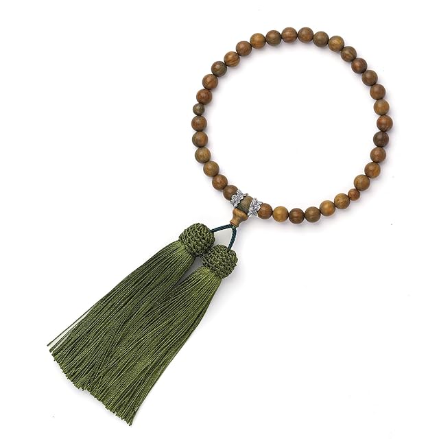 商品名:[JIAZHIXI] 数珠 女性用 念珠 緑檀木製 手作り 附属絹製高級数珠袋 本式念珠 8mm玉 正絹房付き 天然香木 独特の清香 厄除け 消災祈願 仏具 法事 葬式 宗派共通