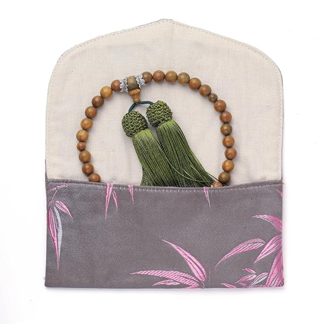 【手作りシルク製数珠袋付き】控えめで落ち着いた上質シルク生地を使用した手作り数珠袋を付属。携帯に便利で清潔に保てるだけでなく、収納時には数珠と適度な摩擦を生み出し、自然な艶出し・お手入れ効果を促進。上品な使い心地を求める方に最適です。
