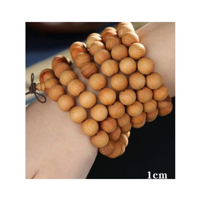 サイズ:丸珠10mm直径、108玉。天然柏木の材質、きれいな木目が付き、細かくて滑らかに研磨して加工します。生薬の香りが付きます。