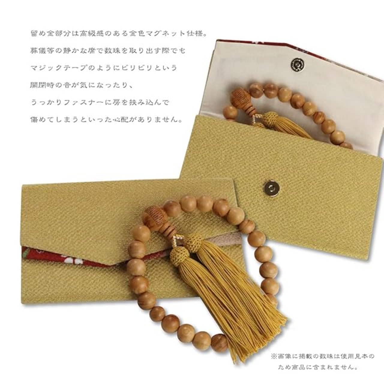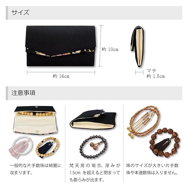 ●本体サイズ:約16cm×10cm<br> ●素材/表:レーヨン100%、裏:綿100%<br> ●さりげない花柄の縁取りが上品な印象です。<br> ●留め具はマグネットホックを使用しておりますので、静かな場所でも音をたてることなく開け閉めができます。<br> ●中仕切りがついているのでハンカチや名刺など小物を入れることができます。<br> ●画像に掲載の数珠はサイズ比較の参考です。お届けする商品に含まれません。
