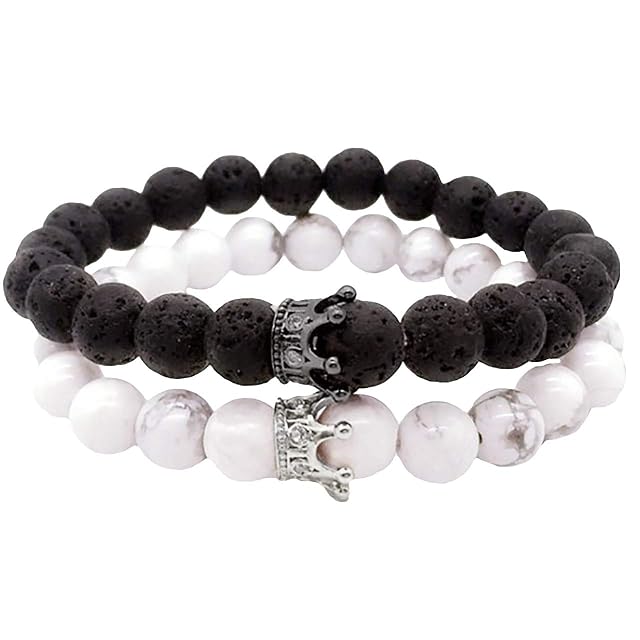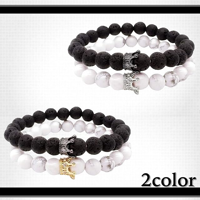 WHITE FANG(ホワイトファング) 数珠 ブレスレット ファッション クラウン 王冠 ブラック 黒 おしゃれ ペア メンズ AZ057 (02:シルバー)