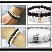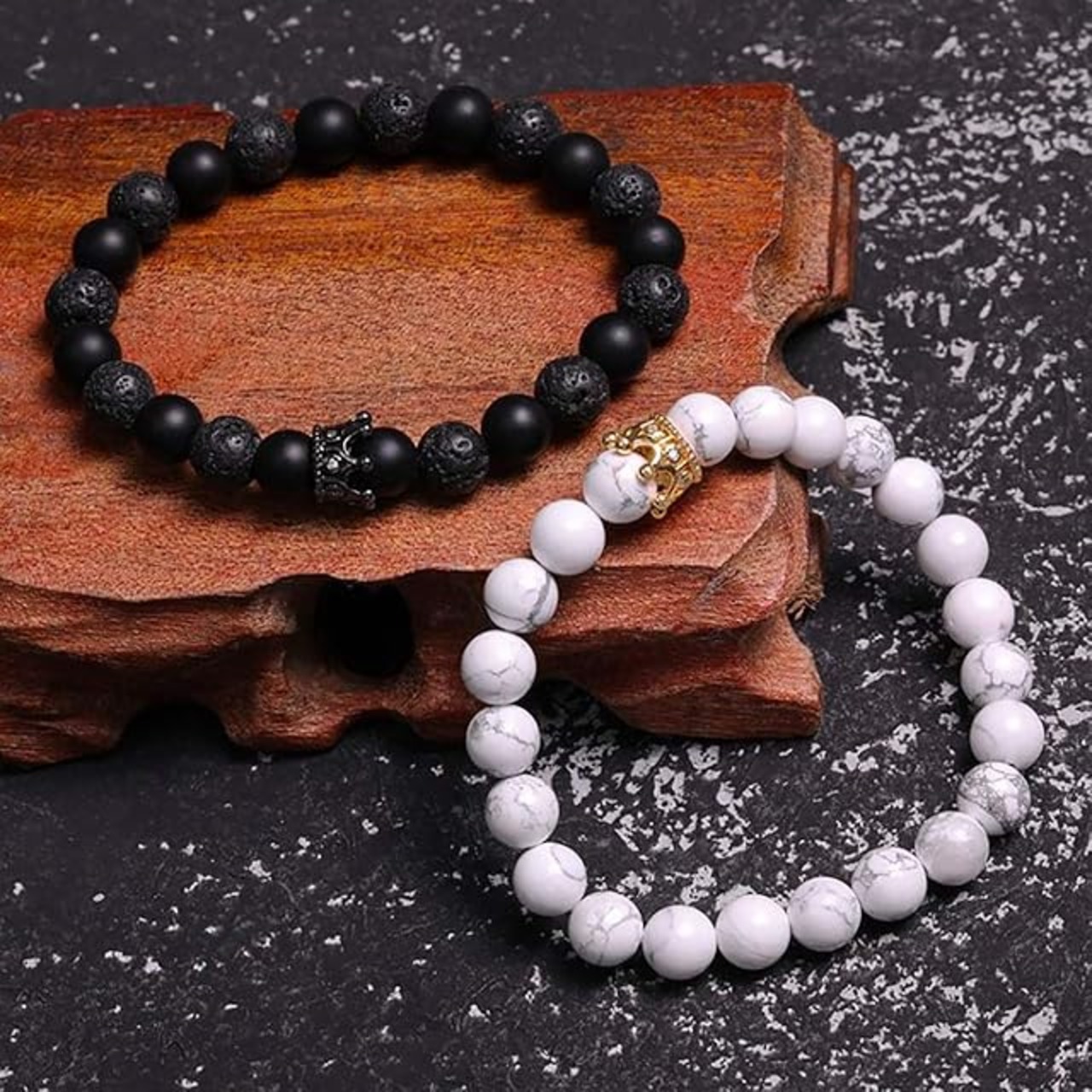 クラウン 王冠 デザインのおしゃれな 数珠 ブレスレット。 モノトーンカラーなので かっこいい 雰囲気に仕上がっています。