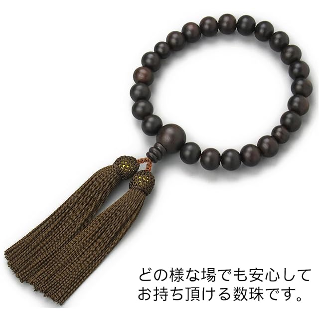 念珠堂 < 日本製 数珠 > 縞黒檀 22玉 <数珠袋付> 男性用 国産 手作り 念珠 (房色 焦げ茶) 全ての宗派でお使い頂けます 【創業80余年 老舗数珠メーカー】