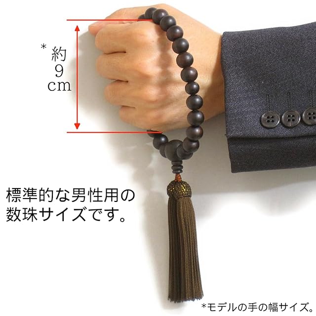 商品名:念珠堂 < 日本製 数珠 > 縞黒檀 22玉 <数珠袋付> 男性用 国産 手作り 念珠 (房色 焦げ茶) 全ての宗派でお使い頂けます 【創業80余年 老舗数珠メーカー】