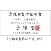 <数珠袋付>携帯に便利な数珠袋をお付けさせて頂きます。ファスナーがL字型で出し入れしやすい数珠袋です。<念珠堂製作証明書カード付> 念珠堂が製作した事を証明するカードとなります。