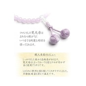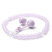 数珠の素材:ラベンダーカルセドニー…主珠:8mm玉、親珠:10mm玉、天珠:6mm玉、人絹梵天房