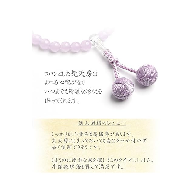 商品名:[EsuonHappiness] 数珠 女性用 数珠袋付き 天然石 梵天房 念珠 [ラベンダーカルセドニー] 8mm