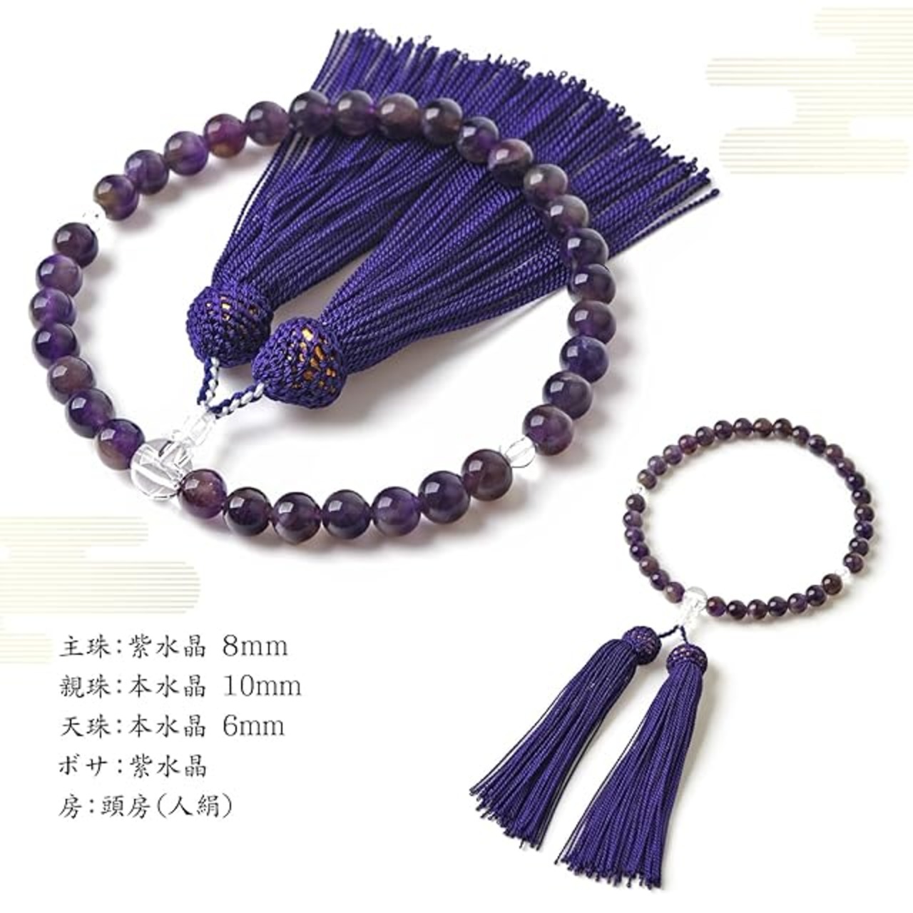 [EsuonHappiness] 数珠 女性用 紫水晶 本水晶 8mm 高級 数珠袋付き アメジスト クリスタル 念珠 天然石 8mm [紫水晶/本水晶]