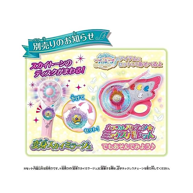 スカイトーンを別売りの「変身スカイミラージュ」にセットすると変身遊びが、「カラフルアクション★ミックスパレット」にセットするとオリジナル音声が楽しめる「スカイトーンマジェスティセット」が登場♪