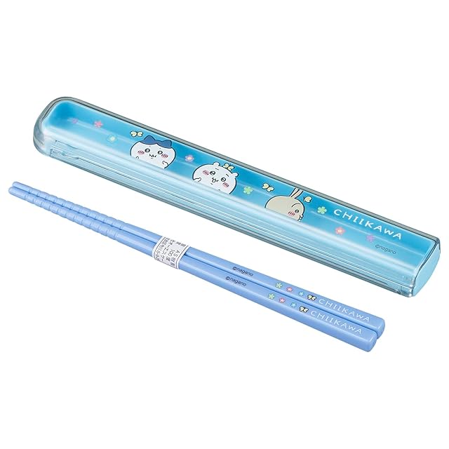 OSK 弁当用箸 カトラリー ちいかわ 引フタ箸箱セット 日本製 抗菌 HS-11 ブルー 17.5×2.7×高さ1.5cm