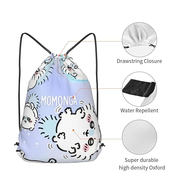 [MINIER] ちいかわ ジムサック 大容量ナップサック 巾着バック 軽量 防水 旅行 アウトドア スポーツジム ジムバッグ 運動トレーニングunisex 多機能 巾着袋 バックパック。長さ42cmx幅36cm