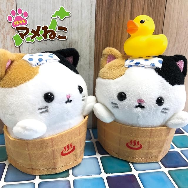 [LamPlanning] 旅するマメねこ キーホルダー マスコット ボールチェン バックチャーム かわいい ふわふわ 猫 ねこ ネコ 癒し (温泉桶バージョン)