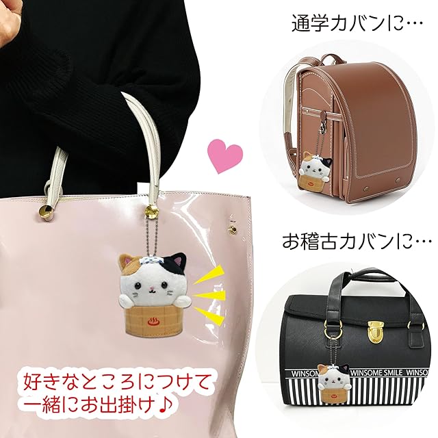 商品名:[LamPlanning] 旅するマメねこ キーホルダー マスコット ボールチェン バックチャーム かわいい ふわふわ 猫 ねこ ネコ 癒し (温泉桶バージョン)