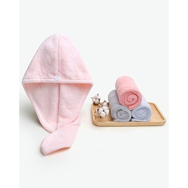 <b>Lumimi吸水 タオル キャップ 髪用 2点セット 速乾 ドライ ヘアターバン お風呂 バス用品 4カラー</b><br><br> 吸水タオルキャップを使うと...1.ドライヤー時間を短縮!髪も傷まない!2.すぐに髪が乾くから携帯して、温泉、スポーツ、<br>プール、ジムに!3.両手が空くから、赤ちゃんがいるママもお風呂上り子どもを見れる!<br><br><b>【特徴】</b><br> ・吸水速乾マイクロファイバーがぐんぐん水分を吸い取ります。マイクロファイバーの吸水力は普通のタオルの5倍、吸水力抜群<br>です。<br>・やさしい肌触り。やさしく包んでしっかり吸収してくれます。<br>・洗濯して何度も使えます。<br>・大判サイズだからロングヘアの方もショートヘアの方もご使用頂けます。<br>・ボタンで留めるからほどけ落ちない。<br>・使用頻度が高くあると嬉しい便利グッズなので、特に小さいお子様のいるママさんへのプレゼントに人気です。<br><br><b>【装着方法】</b><br>後ろ留め 1.髪の毛を包んで前に伸ばす 2.数回ねじって3.後ろでボタンを留めます<br>前留め(ショートヘアはこっち)1.後ろで髪を包んで伸ばす 2.数回ねじって 3.前でボタンを留めます<br><br><b>【商品内容】</b>吸水速乾タオルキャップ2個セット・二つのシュシュをプレゼントします・取扱い説明書<br><b>【カラー】</b>頬紅赤、ライトグレー、ライトブルー、ライトピンク<br><b>【重量】</b>約90g<br><b>【サイズ】</b>60*25cm<br><b>【素材】</b>ポリエステル ポリアミド<br><b>【対象】</b>レディース<br><b>【用途】</b>髪 速乾 (お風呂上り、スポーツ、旅行)<br>