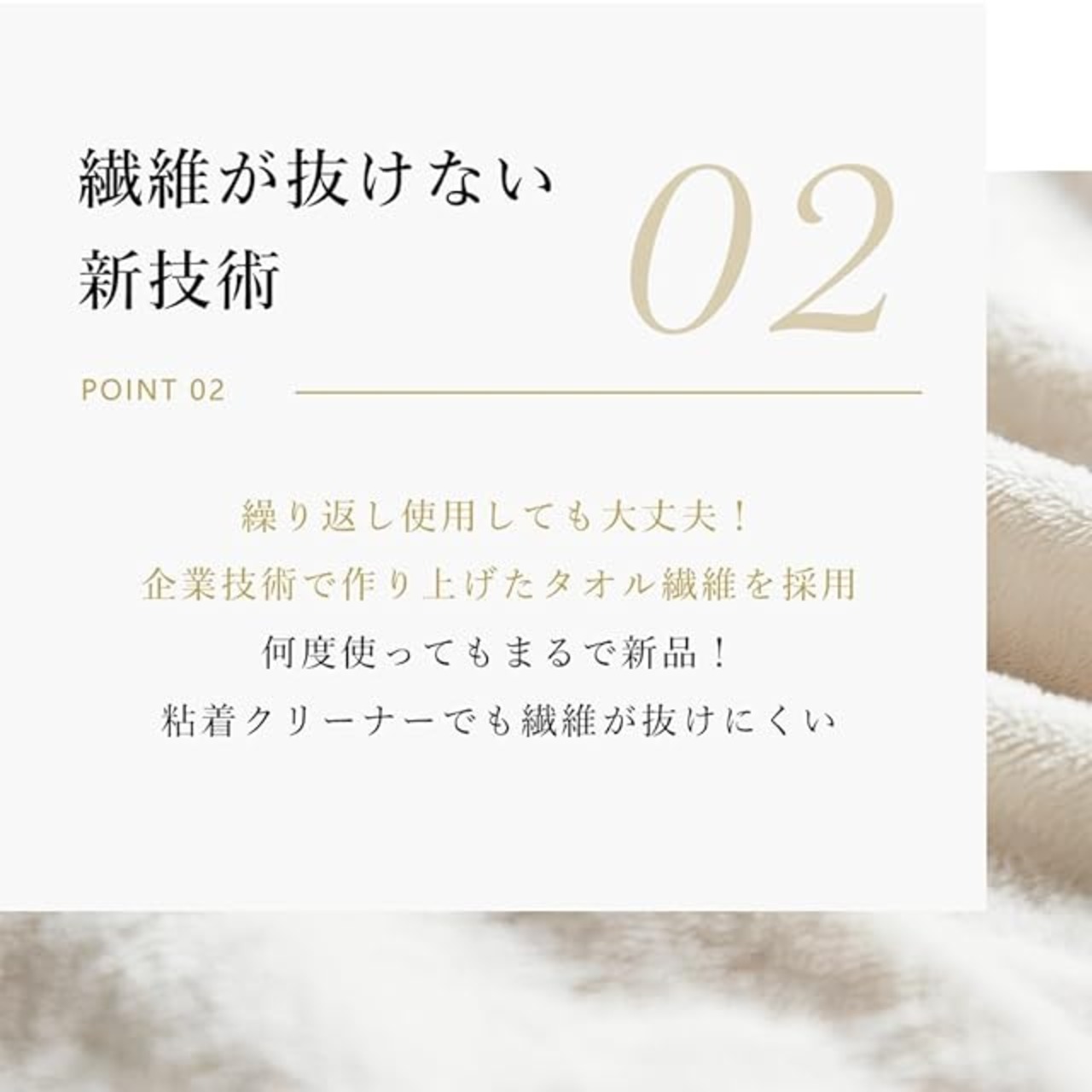 【繊維が抜けない新技術】繰り返し使用しても大丈夫!企業技術で作り上げたタオル繊維を採用、何度使ってもまるで新品!粘着クリーナーでも繊維が抜けにくい!