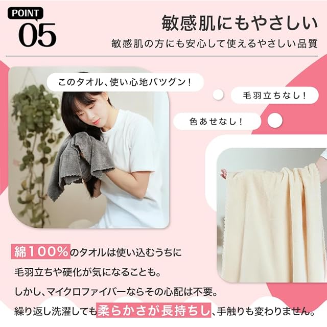【高耐久】「繊維ロック技術」で洗濯100回後でも繊維脱落率0.2%未満! 粘着クリーナー試験をクリアした耐久性で、長期使用後も新品同様の吸水力を持続。コンパクト折り畳み設計で旅行やジムにも気軽に携帯できます。