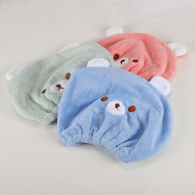 VOCOSTE ヘアドライタオル タオルキャップ 超吸水 速乾 髪の毛 タオル 洗顔 プール お風呂 ヘアタオル ふわふわ 可愛い クマちゃん 緑
