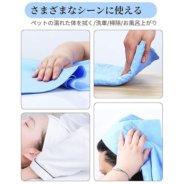 お風呂上がりやお掃除、家事にもオススメ。 ペットへの使用以外にも、吸水性を活かしお風呂上がりやお掃除、車の洗浄後の拭き取りなどにもご使用いただけます。
