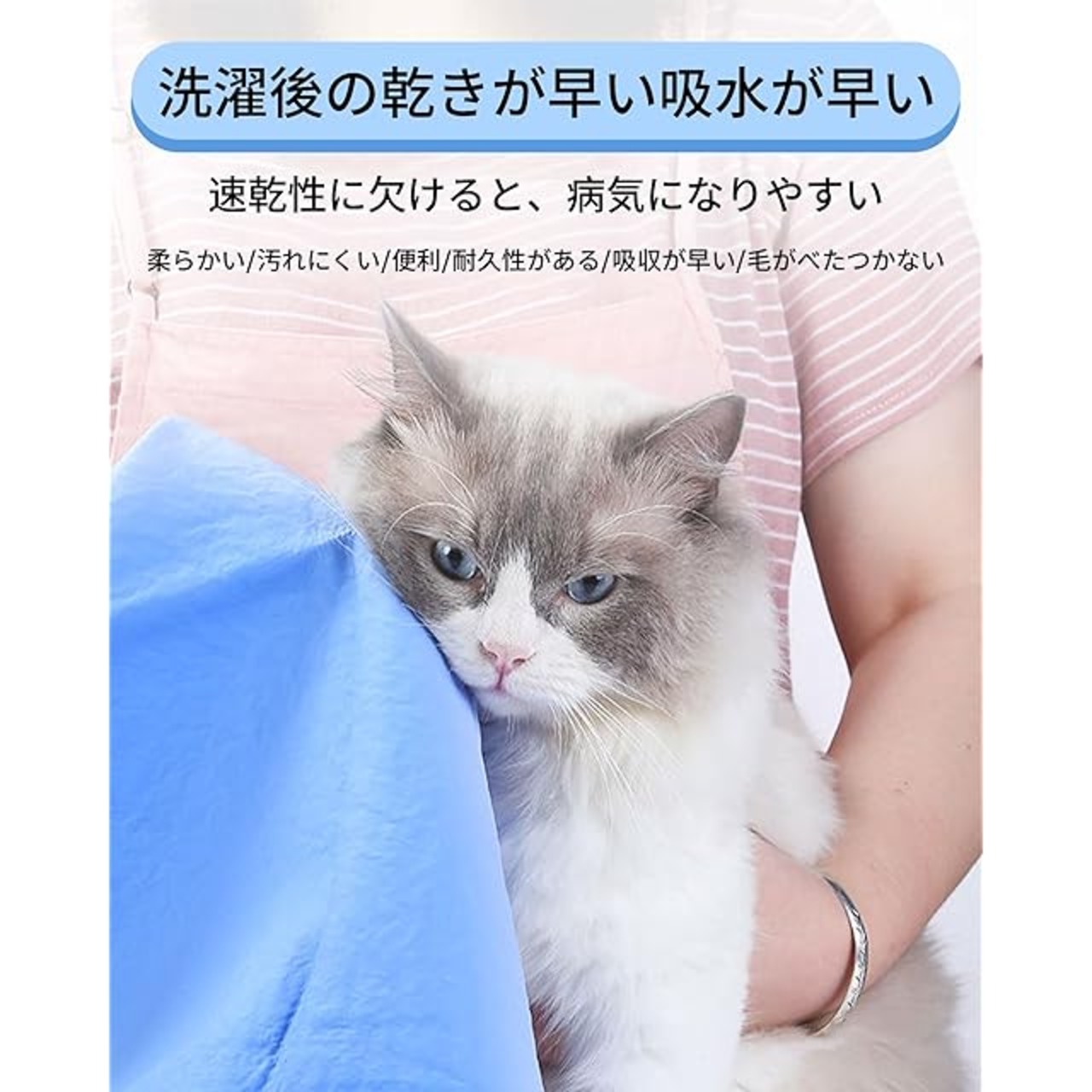 柔らかい肌触りで吸水性抜群の多用途タオル 吸水力抜群なので濡れたペットの毛の水分を素早く吸収し、ドライヤーによるストレスの軽減につながります。 水を含んだ状態では非常に柔らかい肌触りなので、ペットはもちろんお子様から大人までお使いいただけます。